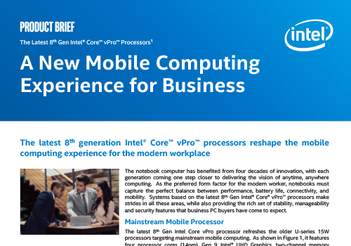 Copyright © 2018 Intel Corporation. All rights reserved. Intel, the Intel logo, Intel Atom, Intel Core, Intel. Experience What's Inside, the Intel. Experience What's Inside logo, Intel Inside, the Intel Inside logo, Intel Optane, Intel vPro, and Xeon are trademarks of Intel Corporation or its subsidiaries in the U.S. and/or other countries.